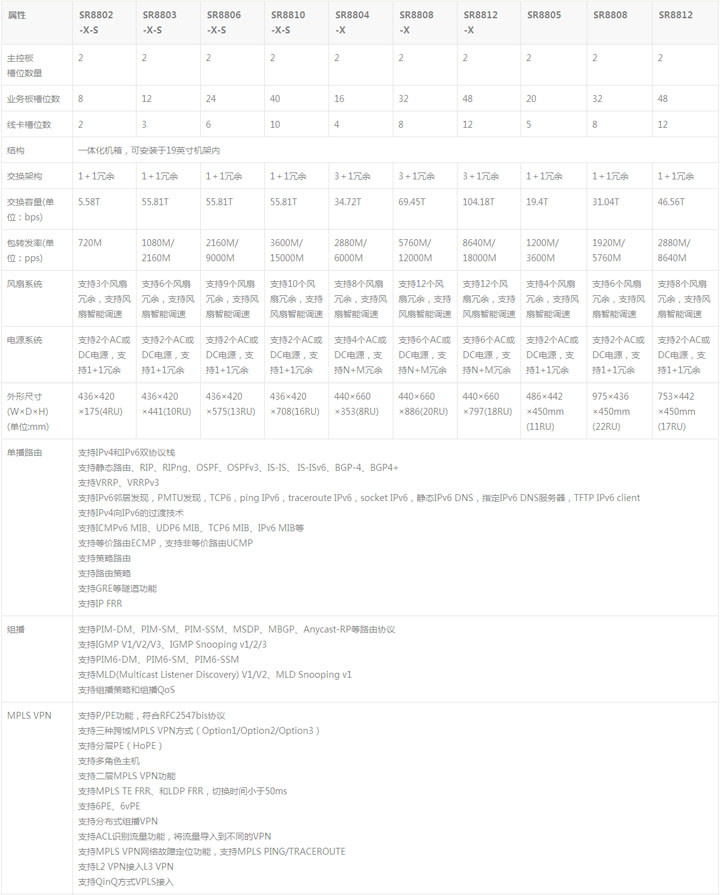 SR8800系列規(guī)格列表