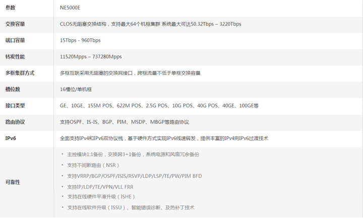 業(yè)界首個(gè)通過(guò)400G滿框極限測(cè)試,提供最大容量1Tbps路由線卡,400G集群最大102.4Tbps交換能力;